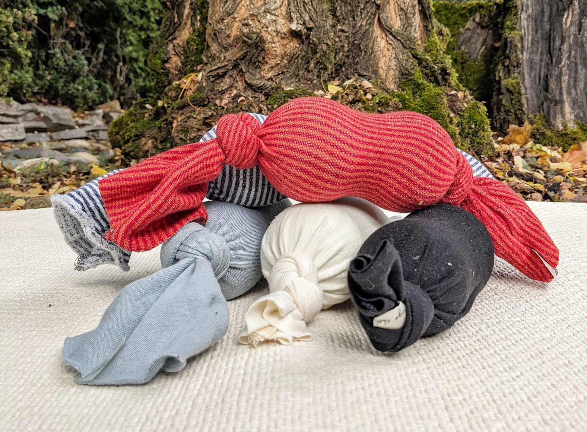For the organic you, organic upcycled tennis ball self-massagers are not only useful self-care tools for helping you feel great, they fun and playful! Made with scraps from sweetskins hemp organic clothing production, they have space to move but can be adjusted by tying it more tightly so they move less.