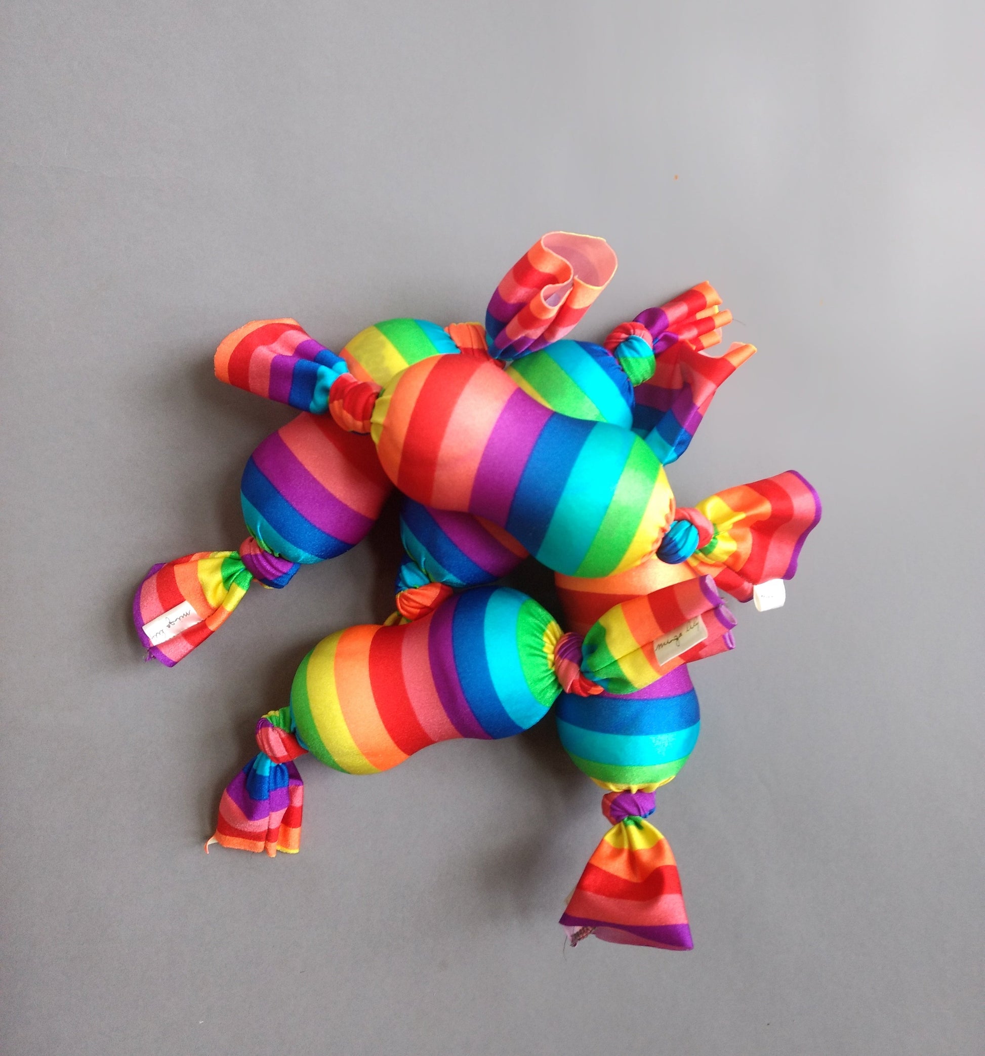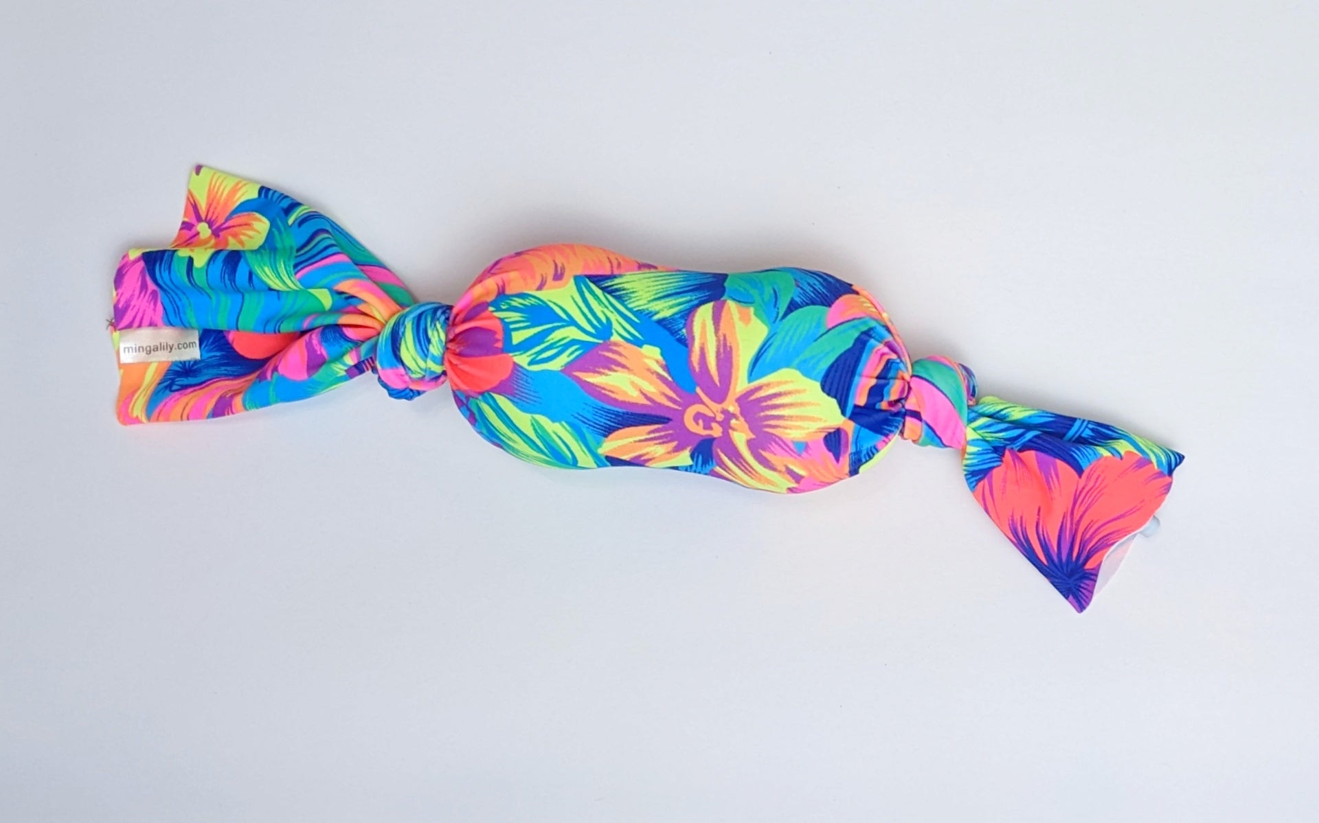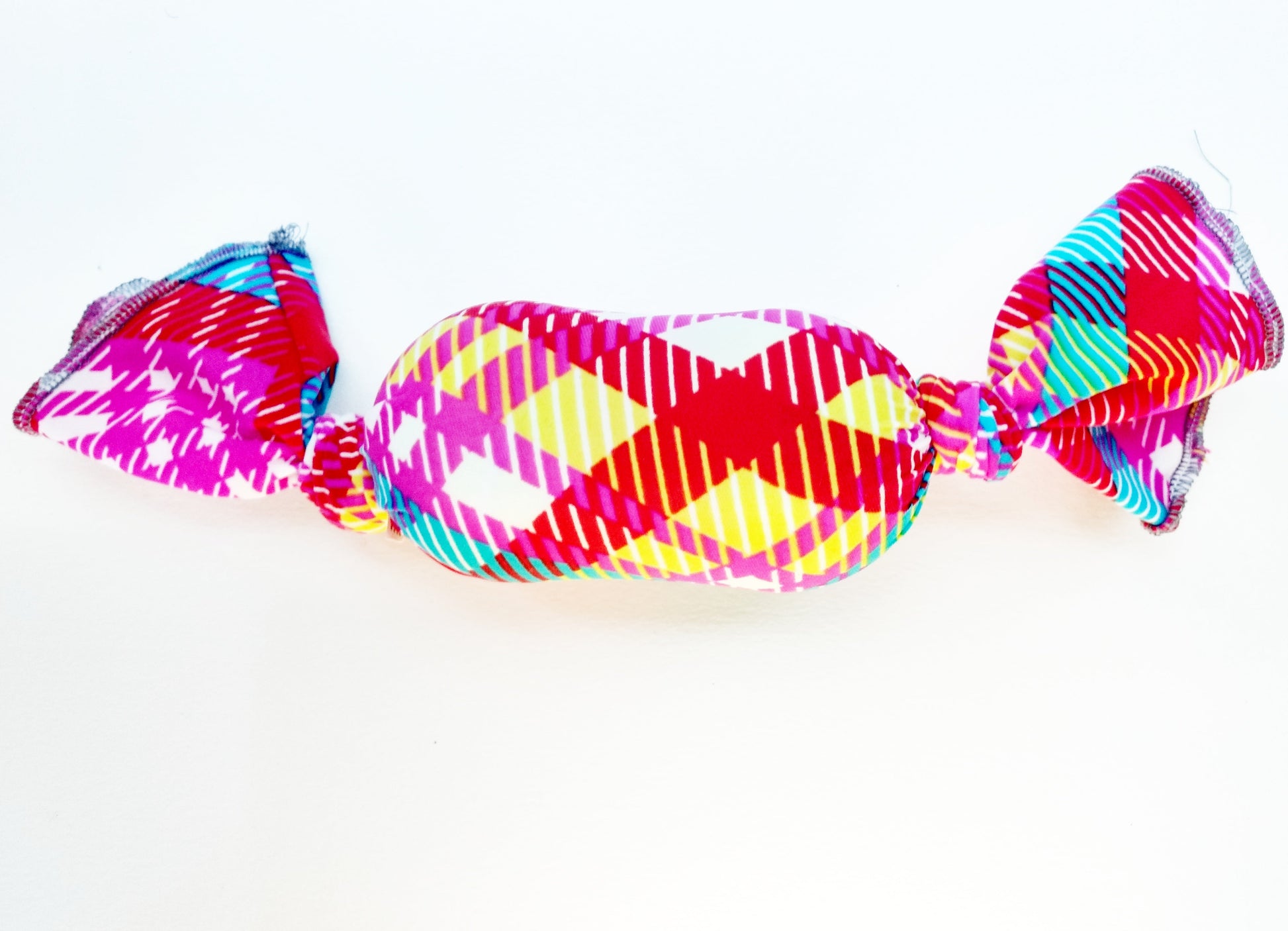 Not only useful self-care tools for helping you feel great, they are fun and playful! Made with scraps from gymnastics and bathing suit lycra, they have space to move but can be adjusted by tying it more tightly so they move less.